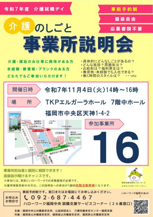 ハローワーク福岡中央 就職支援サービスコーナー(26番窓口) TEL:092-687-4467 |