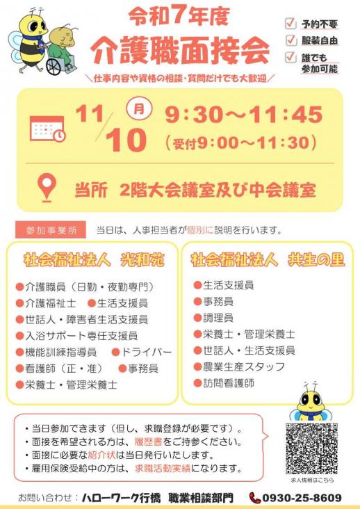 お問い合わせ先:ハローワーク行橋 職業相談部門 電話番号:0930-25-8609 |